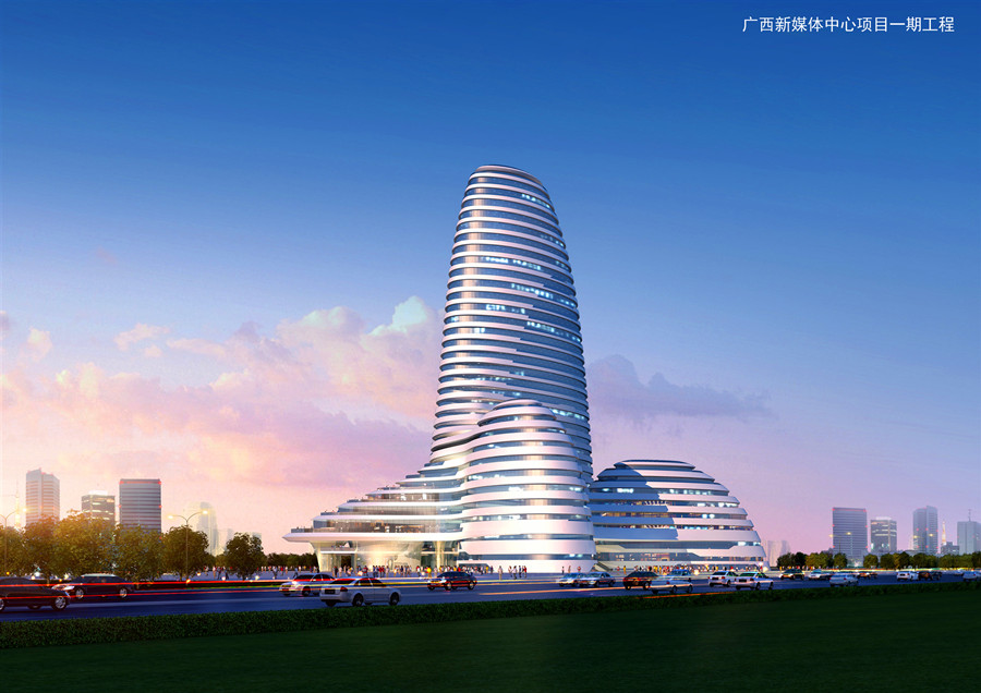 建筑艺术之美:广西新媒体中心的三维曲面造型结合钢结构、玻璃幕墙与GRC幕墙