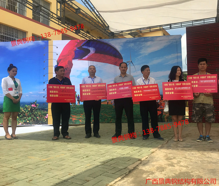 横县六景镇大浪村作为横县贫困村,地处山区,基础条件恶劣,村民生活条件艰苦。景典公司自在六景工业园区建厂经营以来,积极参与当地的社会保障扶贫工作,多次组织公司员工献爱心捐款,将募捐所得的善款用于慰问帮扶生活贫苦的村民。 近几年来在党委政府的指导下推行“精准扶贫,景典公司通过大浪村村民委员会得知村委贫困户陈先生户住房条件艰苦简陋,危改资金不足的情况后,夏云飞总经理亲自带领工程师到陈先生的危改房实地勘察,制定改建计划方案,花费15000多元,运用公司的新产品钢筋桁架楼承板建造屋顶,为陈先生顺利完成危房改造,让