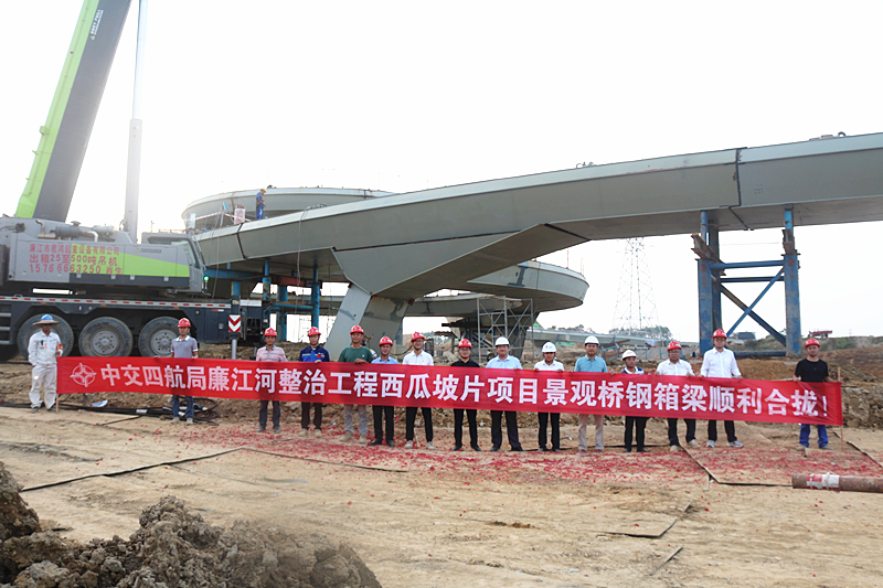 跨河景观桥钢箱梁顺利合龙,景典钢构助力廉江河综合治理工程西瓜坡电站片项目取得重要进展